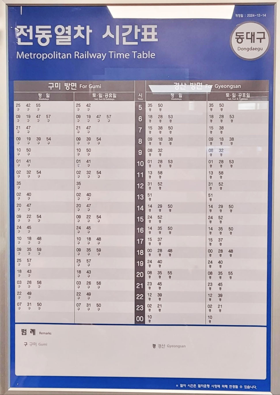 서대구역 시간표