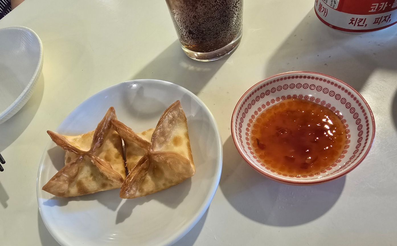 칠리는 스위트칠리 랑군자체는 무난하게 잘튀겨진 만두식감인데 맛이 크림치즈맛이 강렬해서 게살의맛은