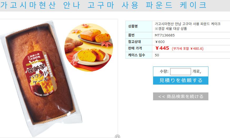 정식?제품명鹿児島県産 [安納芋使用パウンドケーキ] 이마트 4980원